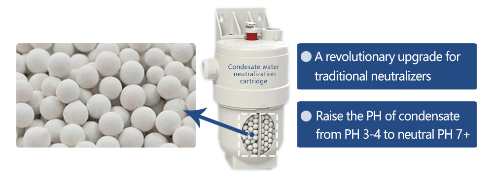 √ Highest efficiency for neutralizing acid condensating water.