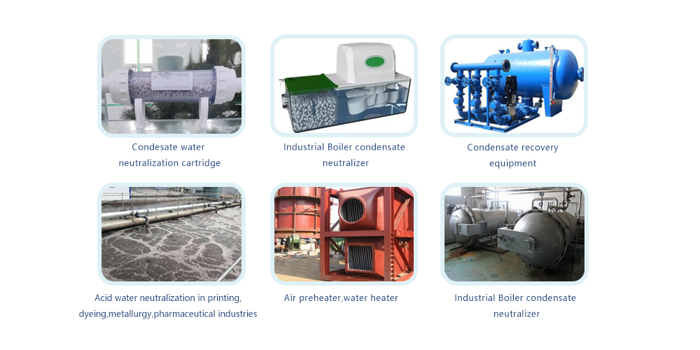 Typically,condensate is acidic and harmful to pumps,sewer systems ,waste water drain pipes as a by-product of burning propane or natural gas, However, 93% or high efficiency boilers ,tankless water heaters,furnaces produce 1.6 gallons of acidic condensate wasterwater for every 400,000BTUS of fuel burned. What's more,there's strictly restriction on the discharge of condensed water in US .Canada. UK etc. The wastewater have to be neutralized before discharged.