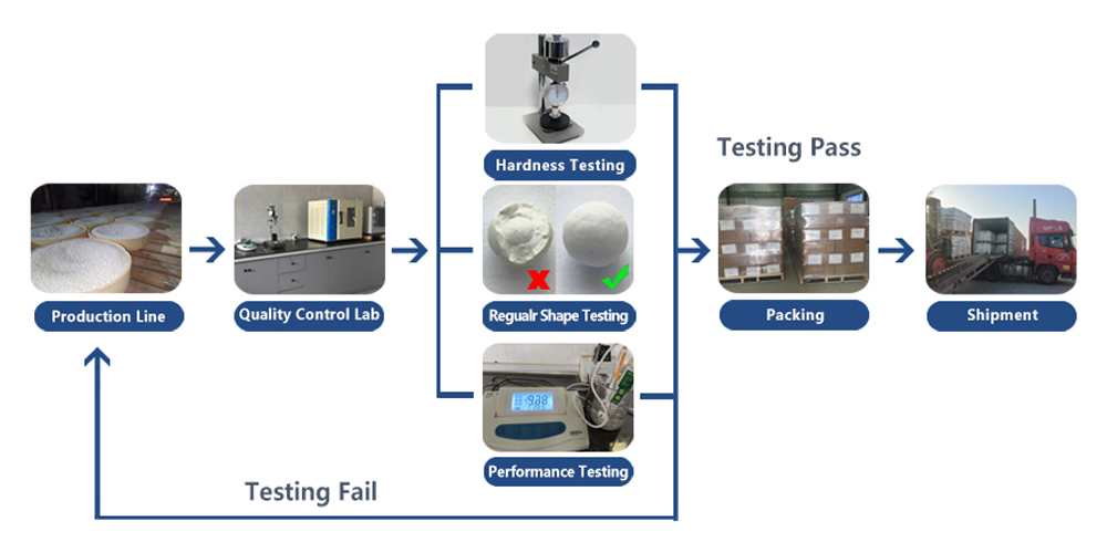 Raw Materials Mixing-Rolling into spherical shape-Drying around 24 hours-Sintered in the roller kiln with 11000tons production capacity per year.