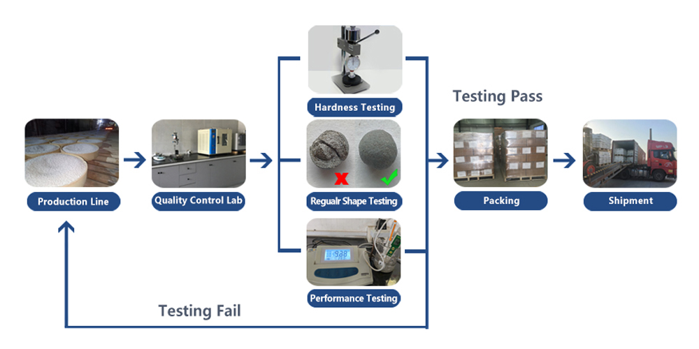 Raw Materials Mixing-Rolling into spherical shape-Drying around 24 hours-Sintered in the roller kiln with 11000tons production capacity per year.