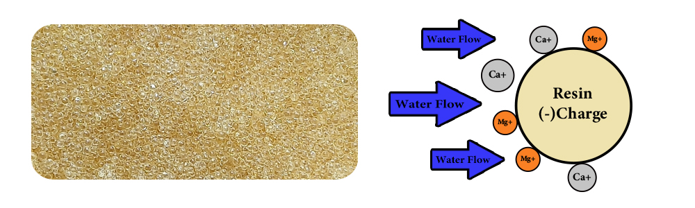 Ion-exchange resins are utilized to replace calcium and magnesium ions in hard water with sodium ions. Fresh resin is loaded with sodium ions at its active sites. When hard water flows through the resin attracts calcium and magnesium ions, releasing sodium ions into the water. This significantly reduces the hardness of the water.