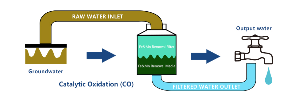 Catalytic Oxidation (CO) is recommended for Katalyst Sand plus in well water, with or without manganese. This method requires adding a controlled amount of Cl2 or another strong oxidant directly to the raw water.